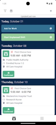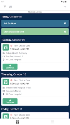 This app features: - Effortless shift booking - With just a few taps, you can secure the shifts you want, allowing you to take control of your professional life. - Near real-time notifications - Stay in the loop with notifications for new shift opportunities, confirmations, and updates. - User-friendly interface - Designed with simplicity the app offers an intuitive interface for seamless navigation.